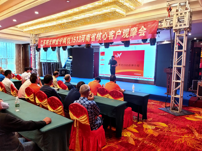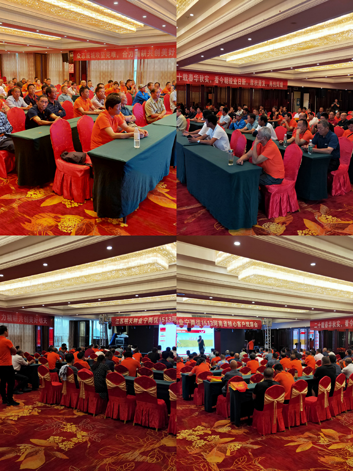 會(huì)議第二項(xiàng),固始縣觀堂鄉(xiāng)零售商許向東向大家介紹了所在區(qū)域“寧兩優(yōu)1513”的表現(xiàn)情況:雖然今年“寧兩優(yōu)1513”只是剛開(kāi)始示范,但是所有種過(guò)“寧兩優(yōu)1513”的農(nóng)戶都說(shuō)好,明年都會(huì)增加種植面積! 會(huì)議第三項(xiàng)由羅山縣代理商許有勇發(fā)言,許總今年在信陽(yáng)地區(qū)鋪貨布點(diǎn)最多,對(duì)“寧兩優(yōu)1513”的表現(xiàn)也掌握的更全面。他表示:能達(dá)到“寧兩優(yōu)1513”這種穗型并且結(jié)實(shí)率在90%以上的品種不常見(jiàn),27.7克的千粒重,增產(chǎn)潛力巨大,是一個(gè)極具推廣價(jià)值的品種! 此次會(huì)議的召開(kāi),讓更多的種業(yè)界朋友了解了“寧兩優(yōu)1513”這個(gè)品種,對(duì)信陽(yáng)地區(qū)推廣打下了堅(jiān)實(shí)的基礎(chǔ)! 布局謀發(fā)展,求變贏未來(lái),江蘇明天種業(yè)愿與您一道創(chuàng)造種業(yè)的美好明天!