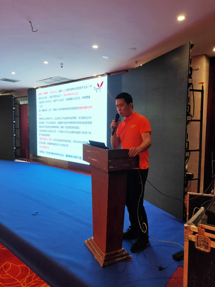 本次會(huì)議由江蘇明天種業(yè)雜交水稻部副經(jīng)理曹恒主持!9月5日10:30伴隨著會(huì)場(chǎng)激揚(yáng)的音樂(lè),宣布會(huì)議開(kāi)始!
