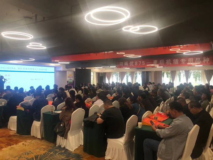 “明兩優875”麥后機插新品發布會在沭陽業事國際酒店會議廳召開。會議由江蘇明天種業雜交水稻部高俊賢先生主持,高經理首先對各遠道而來的客人表示熱烈歡迎,并希望明兩優875的推廣能夠為江蘇雜交水稻麥后機插發展做出新貢獻。
